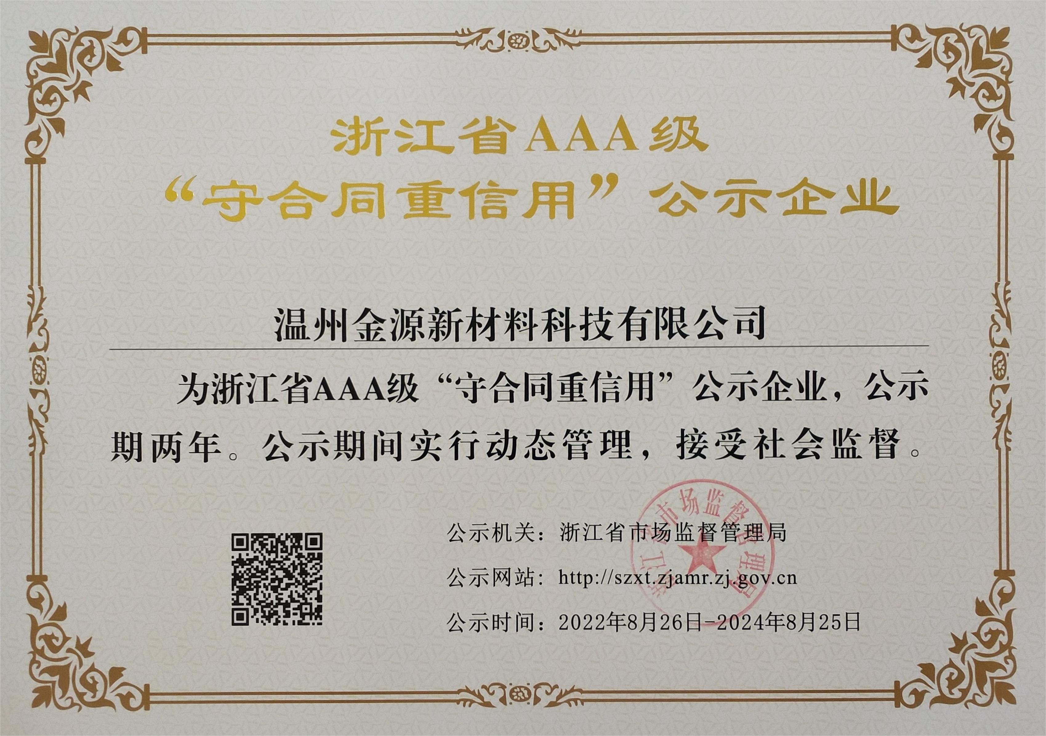 | 浙江省AAA守合同重信用單位 |