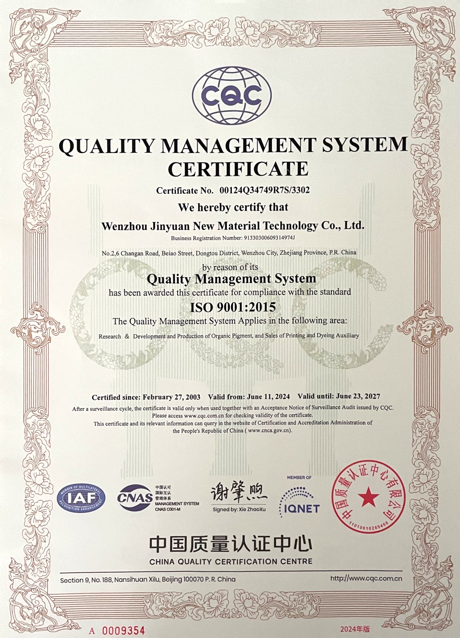 | 質(zhì)量管理體系認(rèn)證證書(shū) |